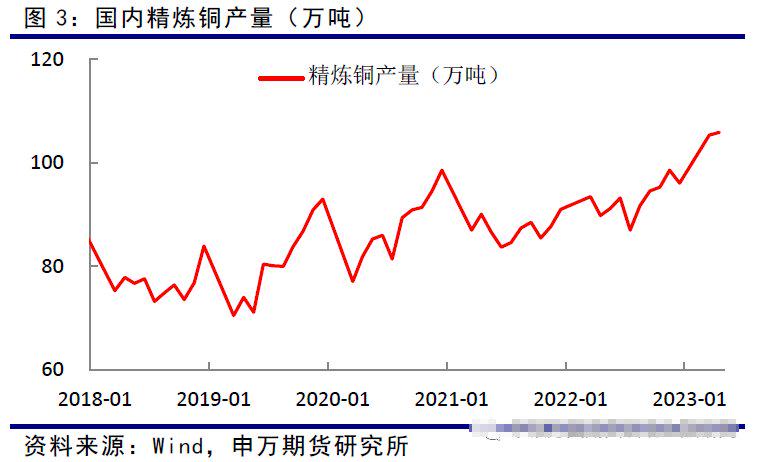 宽松的铜精矿供应,使得国内冶真金不怕火产量延续高增长。继3月份产量超百万后,4月份达到105万吨,1-4月份产量算计411.1万吨,同比增长12.9%。据SMM调研数据炫耀,5月中国电解铜产量为95.88万吨,环比减少1.12万吨,降幅为1.2%,同比增多17%;预测6月国内电解铜产量为93.19万吨,环比下落2.69万吨降幅2.81%,同比飞腾8.7%,主要因夏日锤真金不怕火增多。